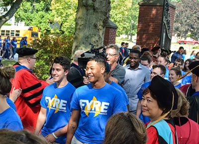 First-year and incoming transfer students walked through the Tiffany Alumni Gates and a gauntlet of applauding faculty and staff on their way to Worcester State’s annual Convocation Ceremony on Tuesday, Sept. 3., an event marking the official start of the academic year. They then filed into Sullivan Auditorium to hear advice and encouragement from speakers representing students, faculty, alumni, and administrative leadership.