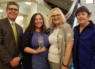 Governor Charlie Baker and the Massachusetts Department of Higher Education recognized Worcester State University graduating senior Janet E. Novack at the seventh annual 29 Who Shine awards ceremony . . .