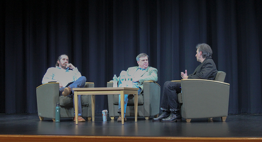 Political journalist Jonathan Martin visited Worcester State University on October 22 to participate in a discussion on the current state of American politics. Martin, politics bureau chief and senior political columnist at Politico, was joined onstage by two university political science faculty members, Anthony Dell’Aera and Nathan Angelo, who took turns posing wide-ranging questions for Martin to address.