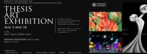“This exhibition is a wonderful opportunity to see current Worcester State students’ artistic creativity,” said Susan Fisher, juror of Currents II, about the student art show. Worcester State professor, gallery director, and thesis mentor, Stacey Parker, stated “The Thesis Exhibition is a showcase of the culmination of the work done and skills learned by our VPA majors. These students have spent months creating unique work that truly speaks to who they are as artists.”