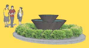 Artist’s rendering of the new kettle fountain being installed in the plaza in front of the Sullivan Building.
