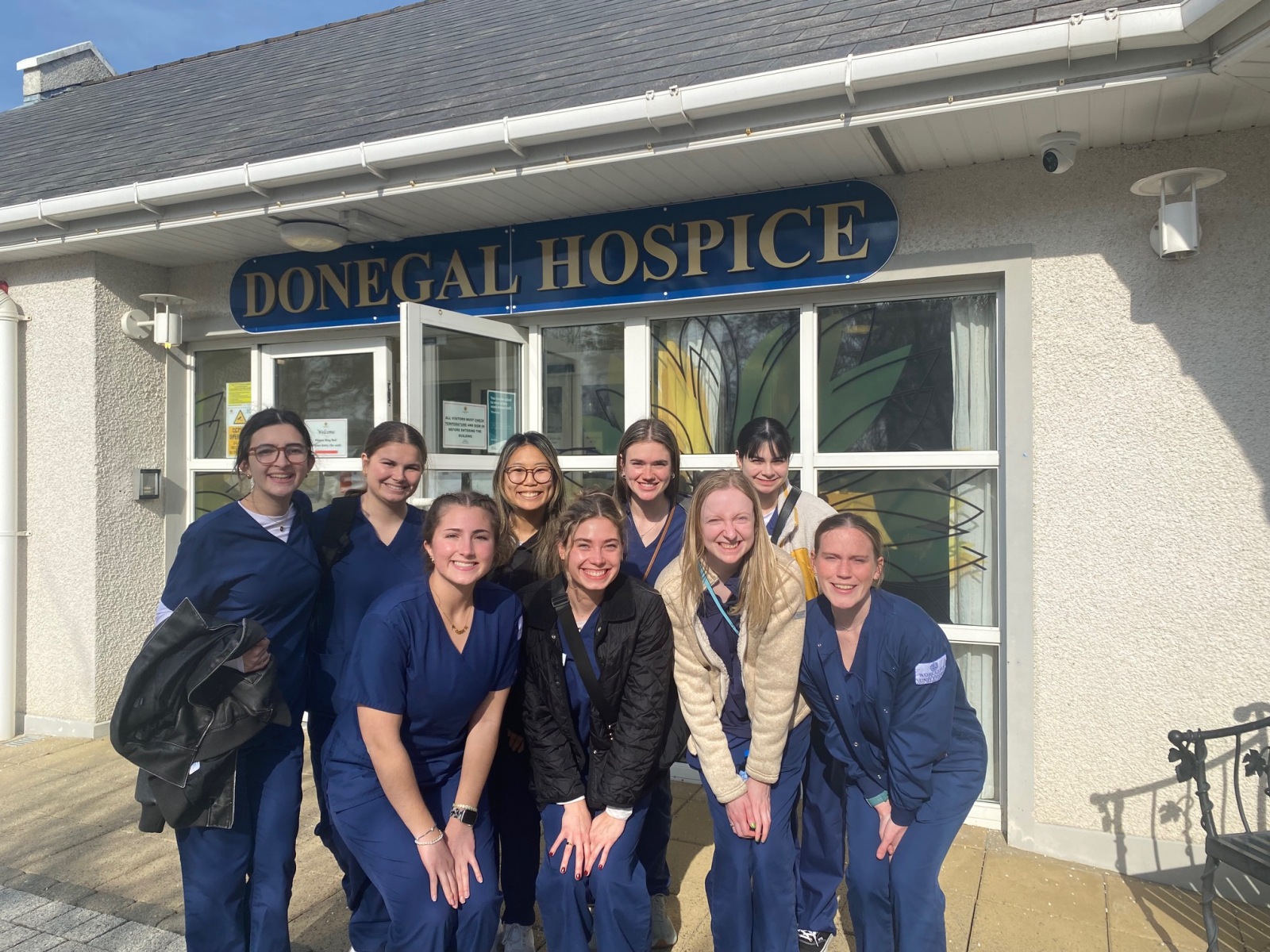 Photos, from left: Nursing students visited a County Donegal hospice clinic as part of a spring break study away where they gained international nursing experience; In 2024, the field hockey team kicked off their season with a two-game international scrimmage with Ulster University and during their visit, they met Mayor Barr; During a study away program at Ulster University, 11 Worcester State students visited the Giant’s Causeway in Northern Ireland, part of a geoscience field trip with Professor Bill Hansen.