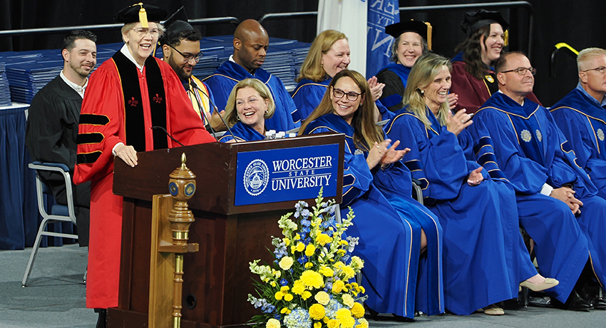She drew on reflections from her own journey from a single-parent household to earning her doctorate and founding a successful mental health services organization. “Attending Worcester State University shaped my life in the most positive and meaningful way,” she said. “It afforded me the opportunity to form lifelong relationships and taught me invaluable life skills like self-advocacy, assertiveness and leadership.”