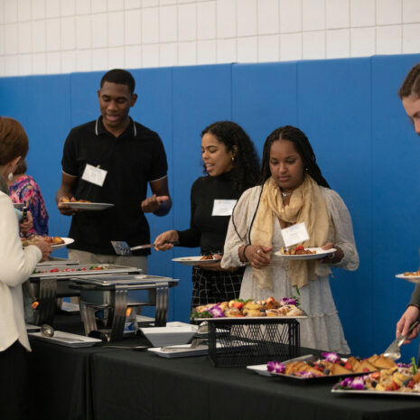 On a recent Sunday morning, the university gymnasium was filled with students and donors – separated by generations, connected by Worcester State University – huddled together laughing, sharing life stories and giving thanks. The university’s annual scholarship brunch brings together donors who fund scholarships with the students who receive them, and this year, more than 250 connected over French toast, fruit and coffee.