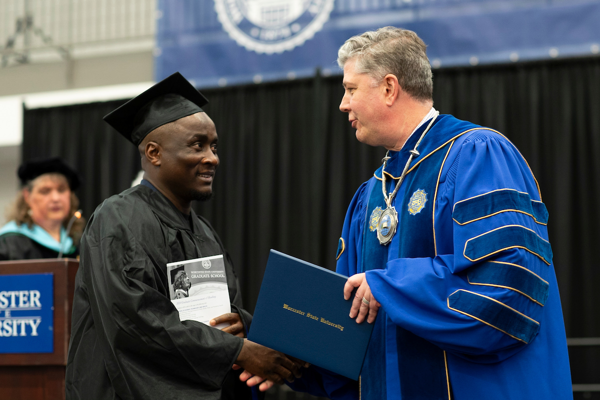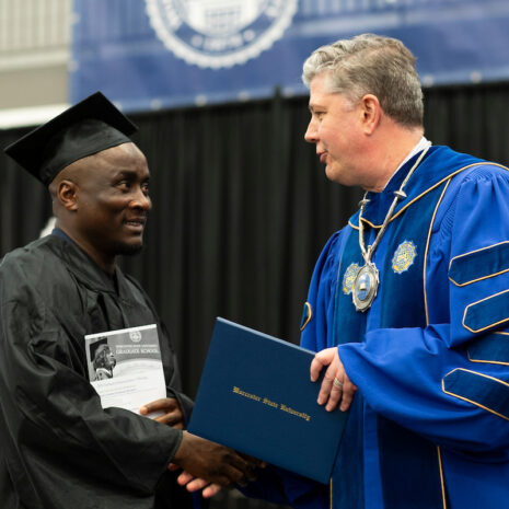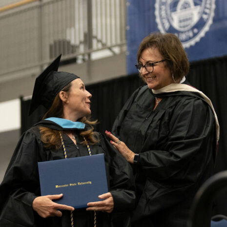Perry urged them to stay connected to Worcester State and “consider yourself one of our family, the Worcester State University family.”