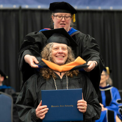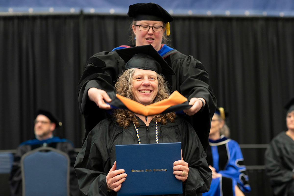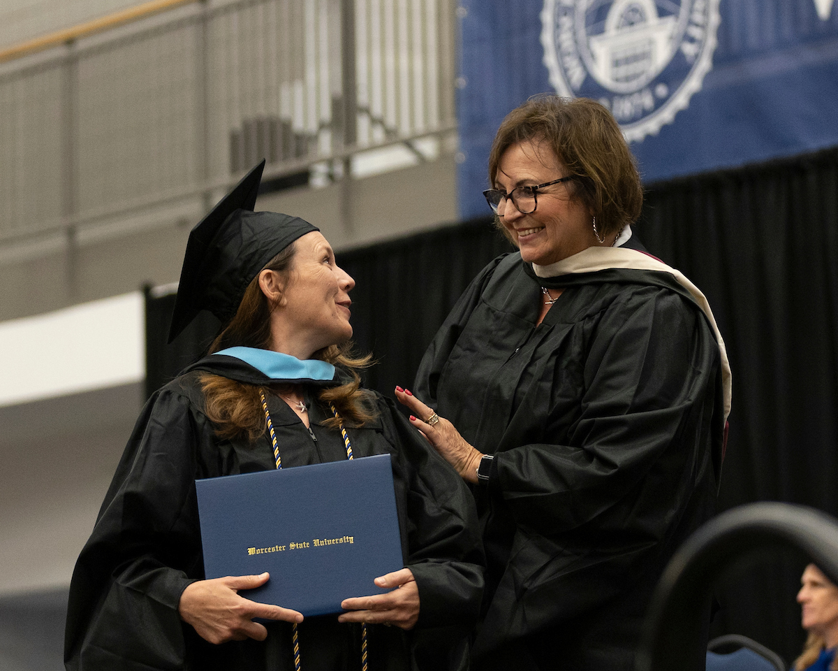 Worcester State University celebrated the Graduate Class of 2024 on May 17 with a joyful Graduate Commencement and Hooding Ceremony that featured an address by Webster Superintendent of Schools Monique Pierangeli ’15, M.S. ’24. With 293 graduates, the class is the largest in the university’s history.
