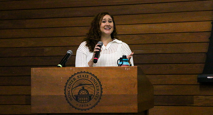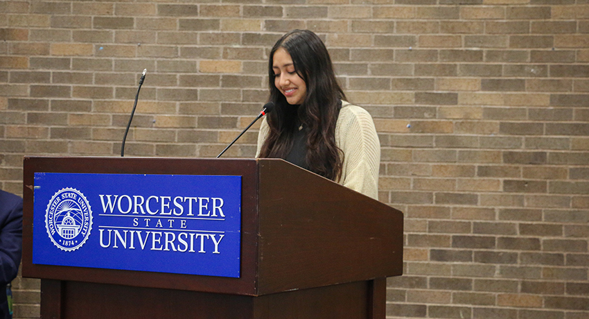 “When I graduated high school, I didn’t feel hopeful about the future,” Diaz said. “My grades were low and I was unmotivated, and I felt like I had already failed.” But with the support of her family and the opportunities provided by Worcester State, she found her footing and discovered a sense of purpose. She specifically mentioned the encouragement she received from the Alternatives for Individual Development (AID) program, an alternative admissions program offering support to students to help ensure their success.