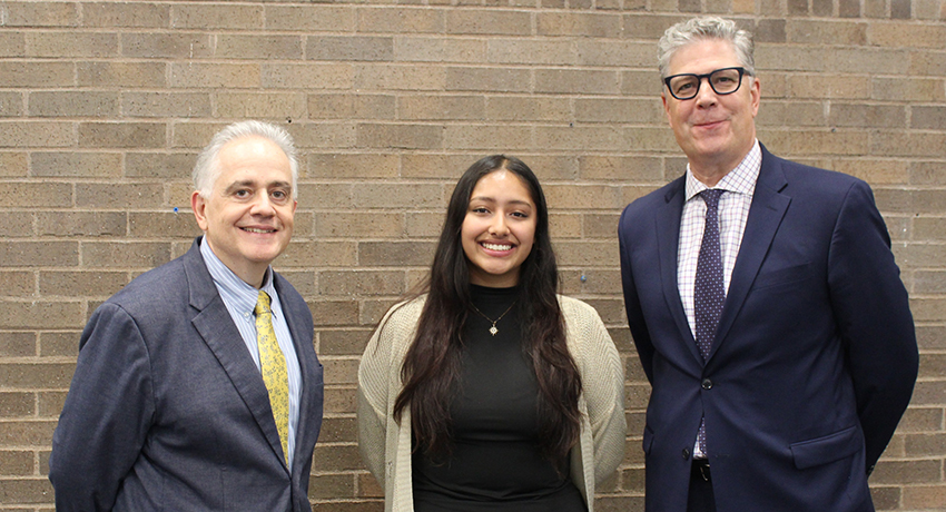 Diaz, who serves as a student ambassador for the Office of Multicultural Affairs, spoke about the importance of “finding yourself, building your village, and pushing beyond your boundaries”—themes that have shaped her own experience as the child of Ecuadorian immigrants.