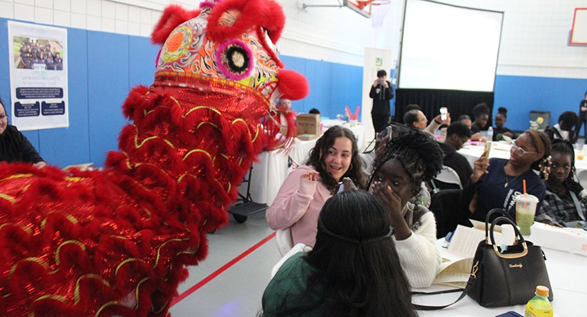 The event featured dance and vocal performances by local student groups, showcasing the talent and creativity of Worcester’s youth. Among the performers were students from Ritmos Dance Academy, the Grafton Street School Singers, Jo Ann Warren Studio, the Burncoat High Spirit Team, and Refugees & Immigrant Cultural Empowerment of Massachusetts, which, to the rousing rhythm of drums, sent two big, friendly dragons parading through the crowd.